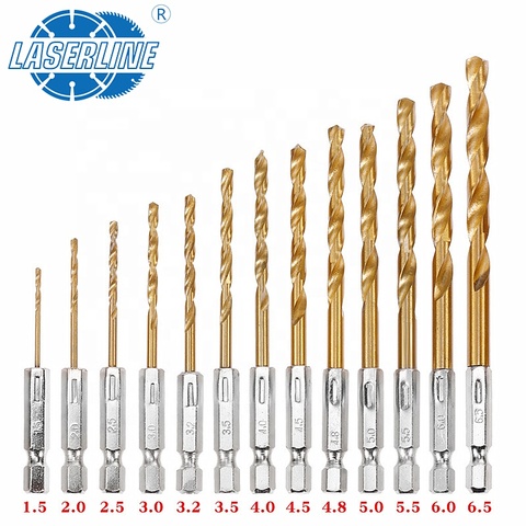 ריצה פריט 13pcs Hex Shank מקדח טוויסט סט 1.5-6.5mm טיטניום מצופה 1/4 "מהיר שינוי שוק עבור השפעה נהג מכונת